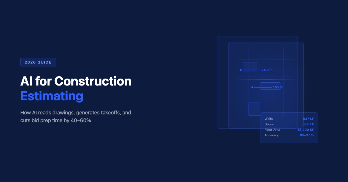 But accuracy numbers on a vendor's website and accuracy on your actual project drawings are two different things. This guide covers what AI estimating tools actually do, where the accuracy claims hold up, where they break down, and how to evaluate whether the investment makes sense for your firm. (For the broader picture of how AI is transforming construction beyond estimating, see our complete guide to AI in construction.)